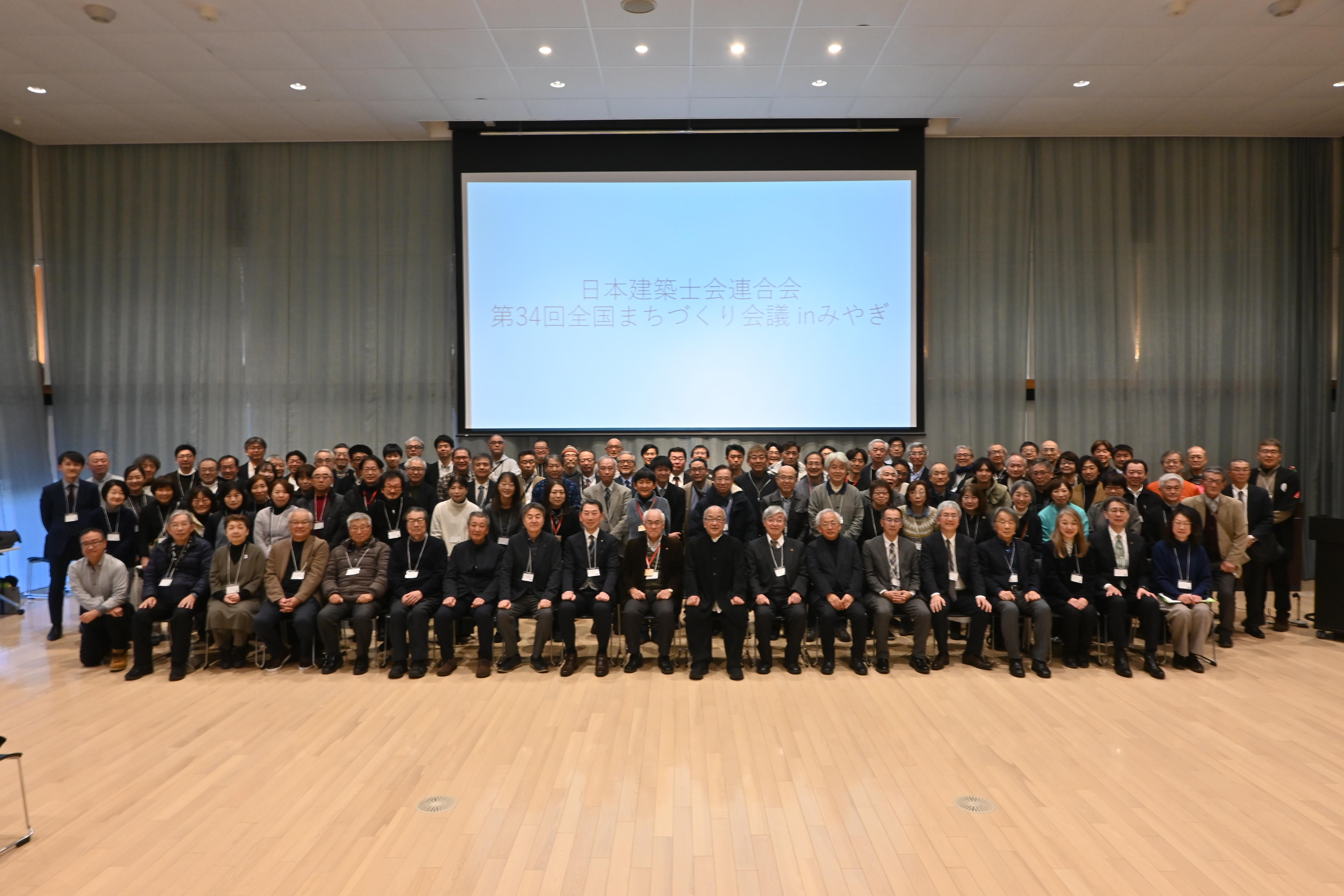 第34回全国まちづくり会議は第33回に引続き、まちづくり委員長だけでなくまちづくり部会員たちも集まり、100名を超える会議となりました。