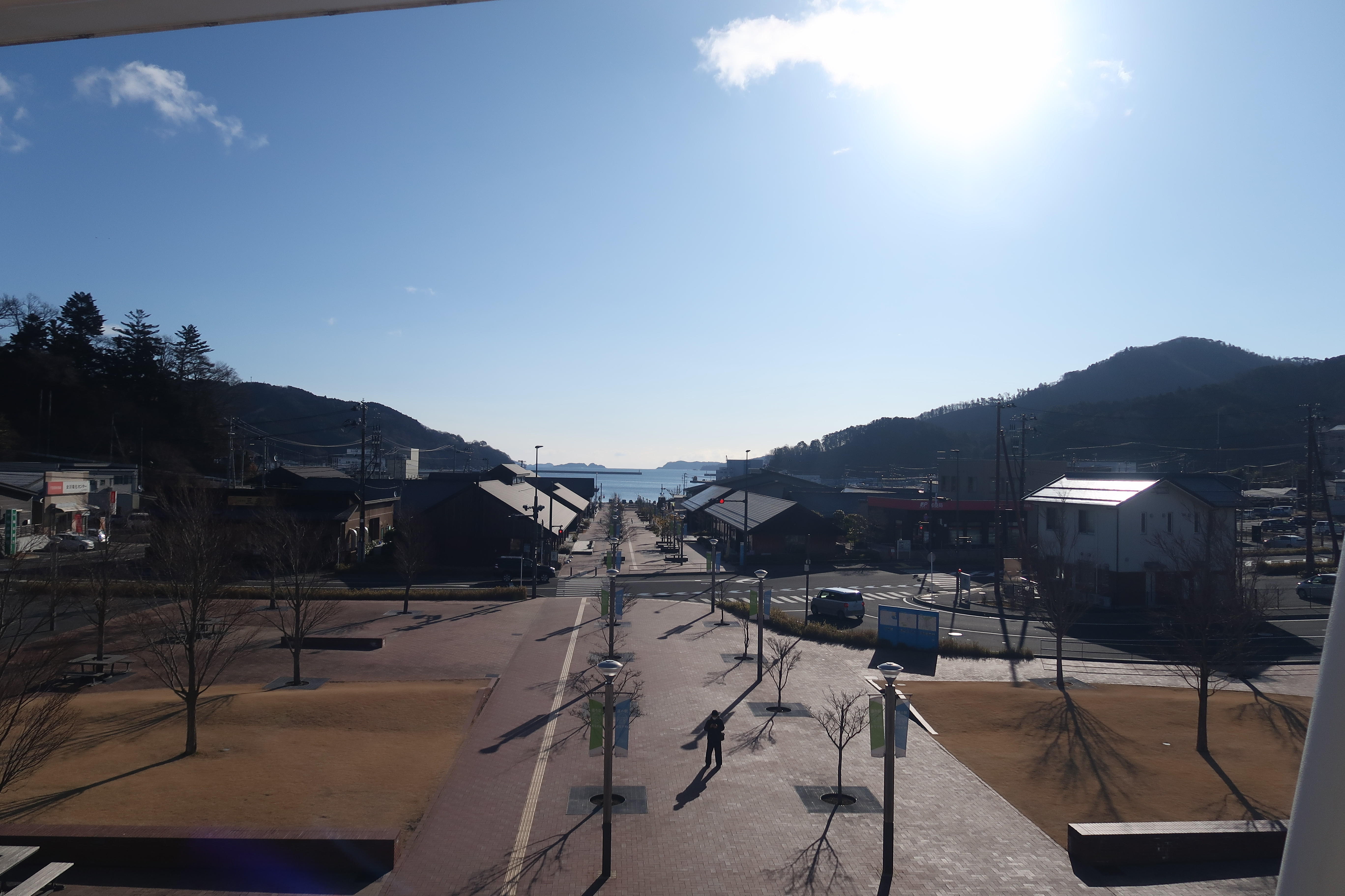 女川駅・女川温泉ゆぽっぽ 女川駅から道の駅おながわを臨む