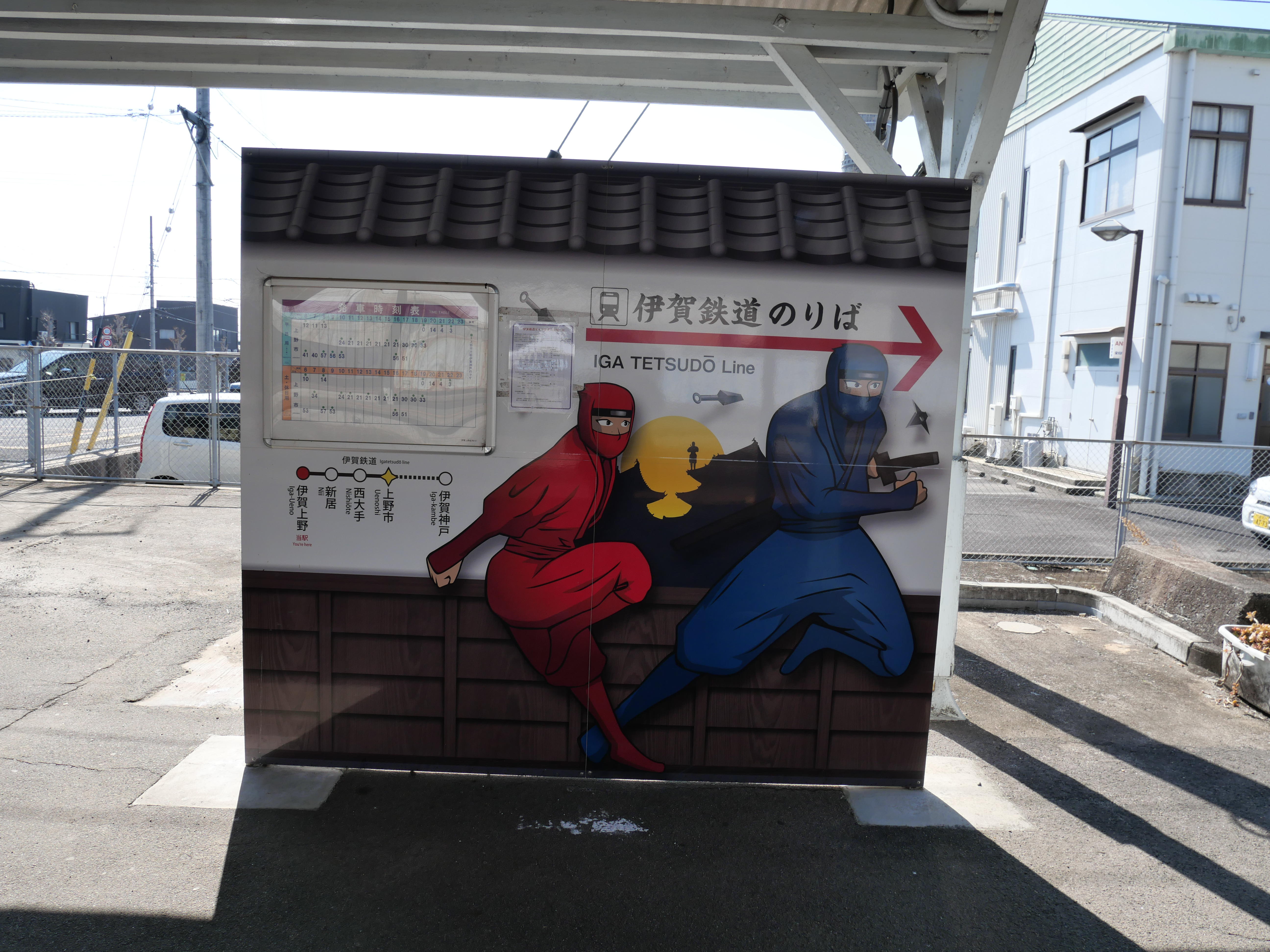 (↑ 伊賀上野駅にてJR関西本線から伊賀鉄道への乗換案内板)
