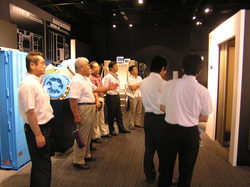 去る7月23日 可茂支部の施設見学会がありました。最終参加者13名。梅雨明け直後とあって晴々とした夏空でした。見学場所としましては三菱電機稲沢製作所にてエレベーターの歴史や製造技術について教えて頂き、最後は稲沢の地名にちなんだ 『173.0m』 の試験棟の展望台までの登りました。もちろんエレベ-タ-を使いました。あいにく夏の空なので遠くの山並みまで見ることは出来ませんでしたが、爽快感がありました。