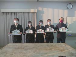完成品を手に記念撮影です。出来ればコロナを心配する事のない中で、建築士会と高校生の交流が出来たら良かったと欲ばりな事を思いました。